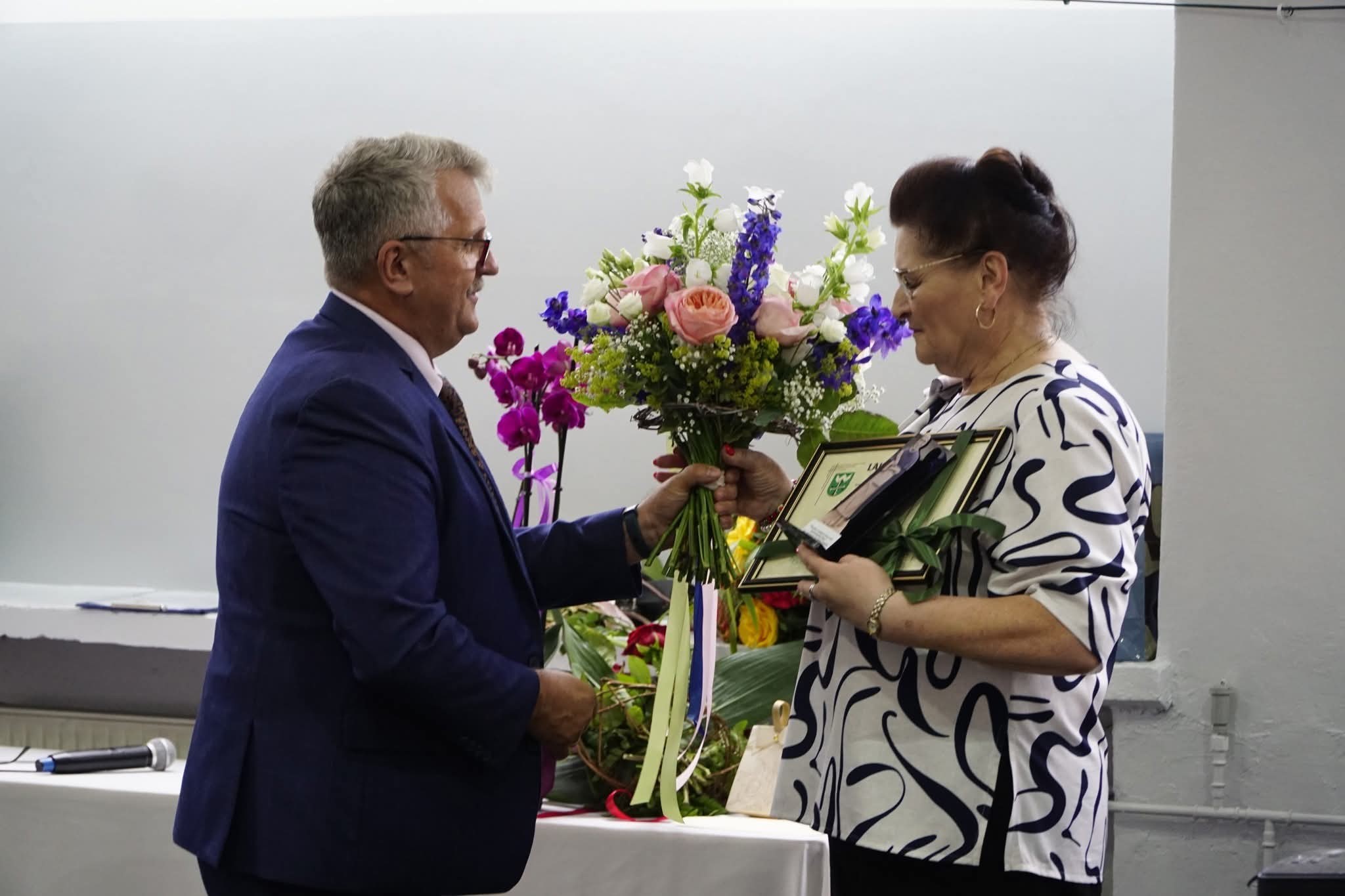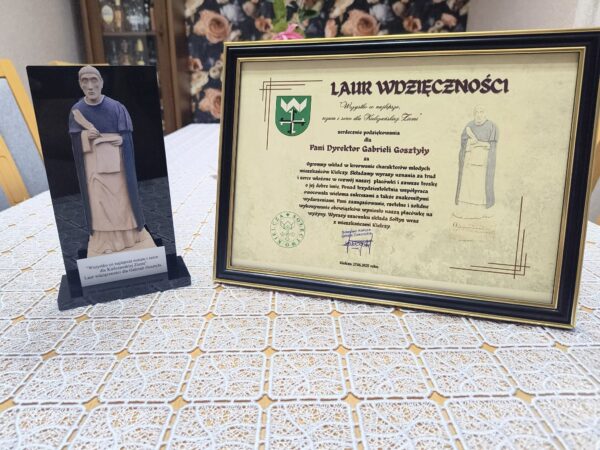 W imieniu Sołectwa Kielcza, Pan Jan Czanguleit wręczył Pani Dyrektor Gabrieli Gosztyła symboliczny Laur Wdzięczności – w podziękowaniu za wieloletnią współpracę, zaangażowanie i ogromny wkład, jaki wniosła w życie naszej szkoły jako dyrektor i nauczyciel.