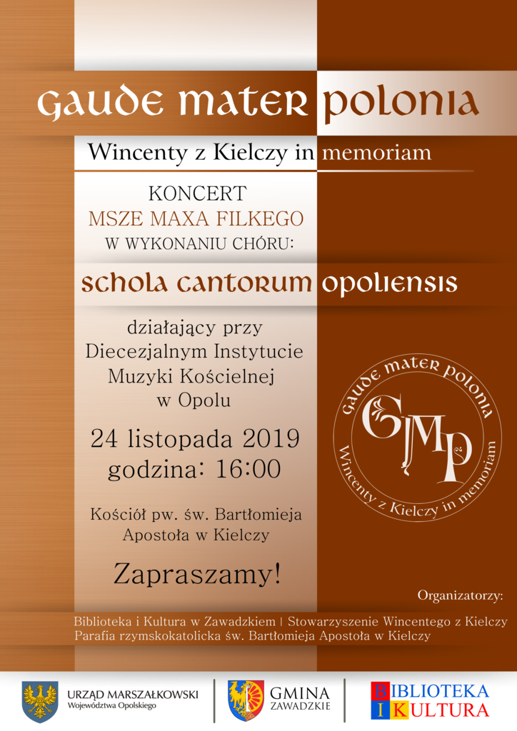 Wszystkich Państwa serdecznie zapraszamy na wydarzenie upamiętniające naszego krajana, hagiografa, historyka, muzykologa, dominikanina, twórcy hymnu Gaude Mater Polonia – Wincentego z Kielczy, które odbędzie się 24 listopada 2019 o godz. 16:00 w Kościele pw. św. Bartłomieja w Kielczy. Szczegóły na plakacie.