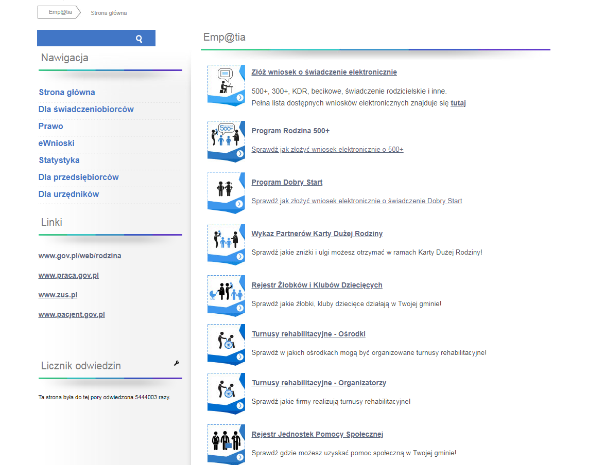 Ponadto od 1 lipca 2019 r. osoby, które posiadają Profil Zaufany albo bezpieczny podpis elektroniczny mogą złożyć wnioski o ustalenie prawa do świadczenia „Dobry start”, świadczenia wychowawcze, świadczenia rodzinne oraz świadczenia z funduszu alimentacyjnego w wersji elektronicznej za pośrednictwem portalu www.obywatel.gov.pl lub też bezpośrednio składając na stronie: https://empatia.mpips.gov.pl/.