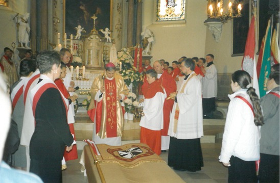 I wreszcie 10 maja o godz. 14.00 w naszym kościele celebrowana była przez ks. bpa Jana Kopca Msza św. z poświęceniem sztandaru naszej szkoły. Po Nabożeństwie udaliśmy się do szkoły, gdzie miało miejsce uroczyste nadanie imienia – Wincentego z Kielczy.