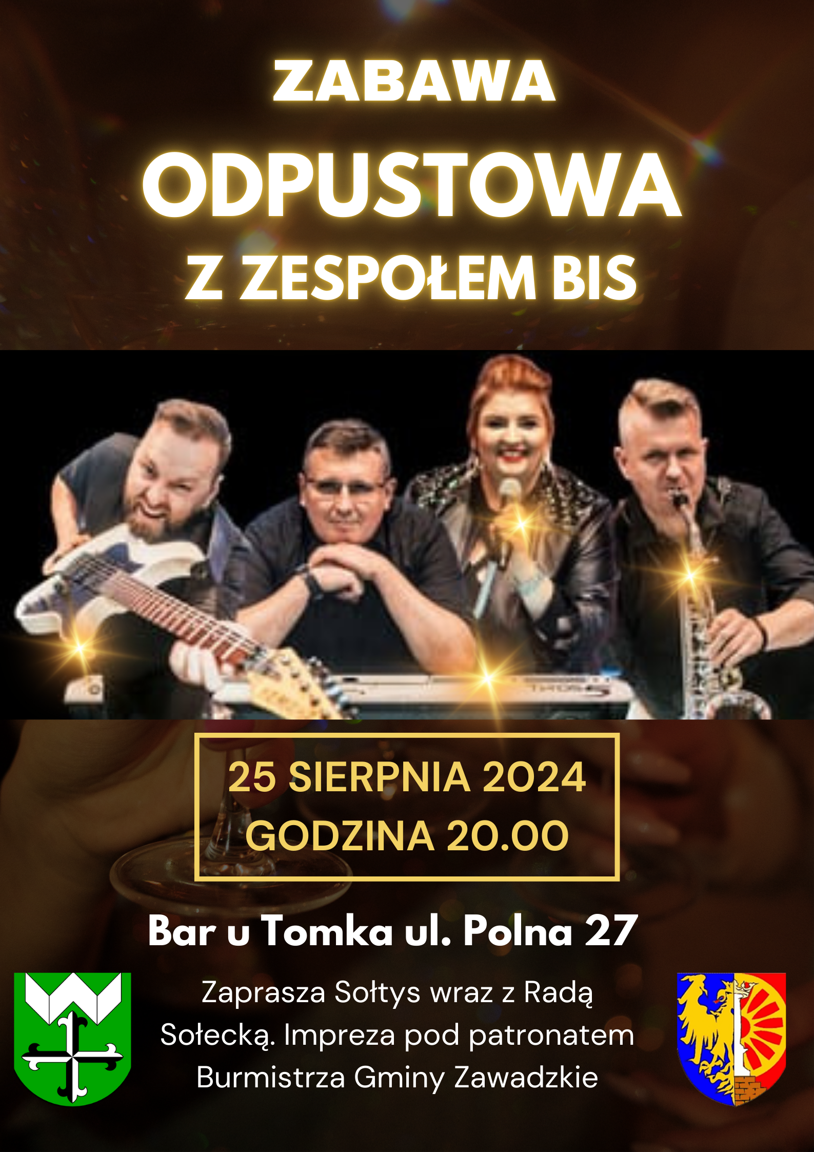 Zapraszamy wszystkich Państwa na zabawę odpustową – szczegóły na plakacie poniżej 25 sierpnia o 20:00 w Barze u Tomka.